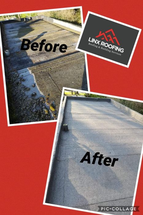 Felt flat roof refurbishment is a total roof coating waterproof system developed to refurbish failed industrial, commercial or domestic flat roofs. It is an ultra tough, seamless flexible overlay.